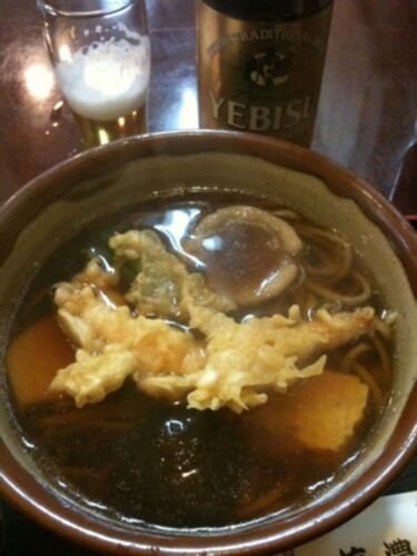 普通の定食屋さんのような風情ですが、それに反して蕎麦は本格的なものでした。しっぽくそばをいただいたのですが、香り抑えめの品のいいそばがたっぷりのボリューム。具の豊富さもあいまって、満足・満足でした。ビールがエビスなのもうれしかった。