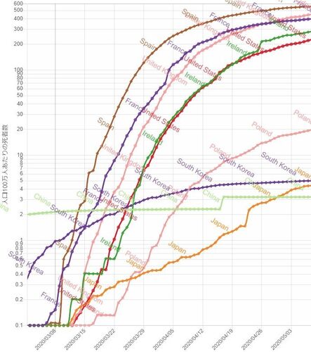 コロナウイルスによる国別人口死亡率にはかなり差がある。そしてそれらは対策よりも地域に相関があると思われる。